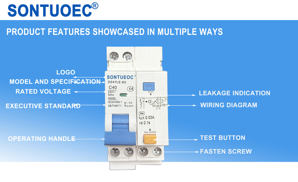 SONTUOEC ແມ່ນໜຶ່ງໃນຜູ້ສະໜອງ/ຜູ້ຜະລິດຈີນທີ່ມີຄວາມຊ່ຽວຊານໃນການຜະລິດເຄື່ອງໃຊ້ໄຟຟ້າຂະໜາດນ້ອຍຕ່າງໆ.DZ47LE ໃຊ້ໄດ້ກັບ ສາຍ AC 50/60Hz ແຮງດັນ 230V ສຳລັບ ເສົາດຽວ ສອງສາຍ, 2 ເສົາ ຫຼື 400 V. 4 ເສົາ ແລະ ຈັດອັນດັບ ປັດຈຸບັນ ສູງສຸດ 63A. ມັນສາມາດປົກປ້ອງສາຍ ແລະ ມໍເຕີຈາກການໂຫຼດເກີນ ແລະ ວົງຈອນສັ້ນ ມັນ ຍັງສາມາດ ຖືກ ໃຊ້ ສໍາລັບການ ປ່ຽນ ເສັ້ນ ບໍ່ເລື້ອຍໆ ແລະ ການເລີ່ມຕົ້ນ ມໍເຕີ ບໍ່ດົນ.ມັນ ສອດຄ່ອງ ກັບ ມາດຕະຖານ IEC61009..